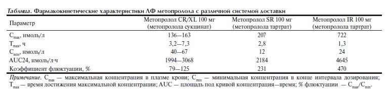 Приведенные результаты крупных КИ касаются обычной ЛФ метопролола тартрата, для которой характерен период полувыведения средней продолжительности. В то же время для ЛФ метопролола с замедленным или контролируемым высвобождением характерен улучшенный фармакокинетический профиль, что создает предпосылки для большей эффективности препарата по сравнении с обычной ЛФ.
