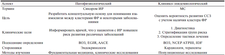 Существует два различных подхода к изучению МС — патофизиологический и клинико-эпидемиологический, которые принципиально отличаются друг от друга (табл. 2) [11].