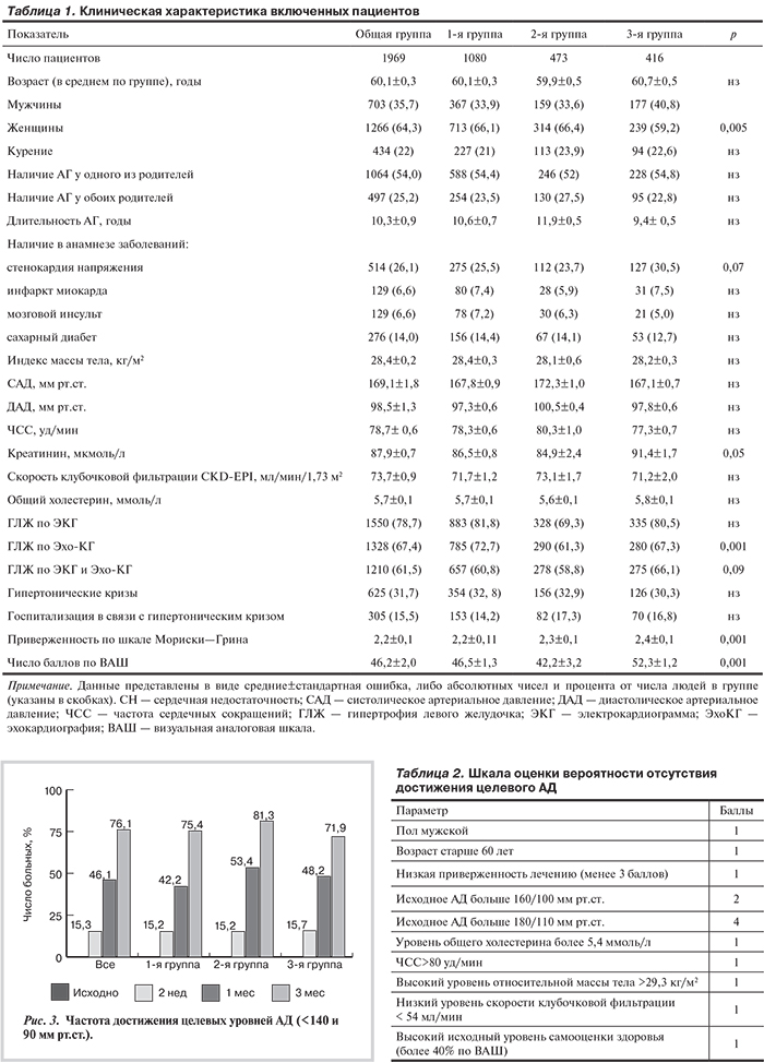 Всего в исследование были включены 1969 пациентов: соответственно в 1-ю группу – 1080 пациентов, во 2-ю группу — 473 и в 3-ю — 416.