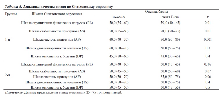 Таблица 5. Динамика качества жизни по Сиэтловскому опроснику.