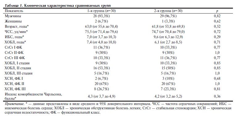 Таблица 1. Клиническая характеристика сравниваемых групп.