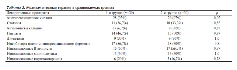 Таблица 2. Медикаментозная терапия в сравниваемых группах.