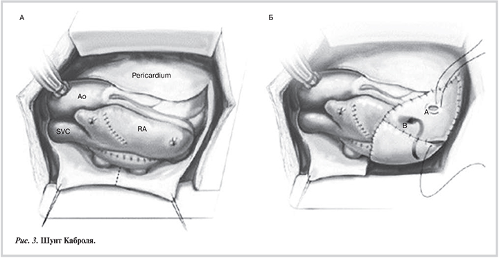 Нетрадиционные методы коррекции. Анализ литературы и собственный опыт [5, 10, 18, 29] показывают, что ни один из традиционных методов коррекции разрывов ЗСЛЖ не застрахован от продолжающегося или отсроченного кровотечения, обусловленного расширением зоны разрыва или негерметичностью швов. В подобных случаях возможна дополнительная герметизация задней стенки и правых отделов сердца перикардом для шунтирования продолжающегося или потенциального кровотечения из сформированной перикардом «сумки» в правое предсердие через фистулу в его стенке по Кабролю. Первая подобная операция успешно выполнена А.B. Goldstone и соавт. [10] в Mount Sinai School of Medicine (Нью-Йорк) у больной 84 лет после биопротезирования МК, осложнившегося ранним сочетанным разрывом ЛЖ III и II типа. Ввиду кровотечения, продолжавшегося после эндовентрикулярной пластики ЛЖ с реимплантацией биопротеза меньшего размера, проведена герметизация задней стенки сердца по Кабролю с отсроченным (до 5 дней) сведением грудины. При контроле через 6 мес пациентка жалоб на функцию сердца не предъявляла, развития псевдоаневризмы ЛЖ не отмечено. Предложенный метод представляется идеальной альтернативой при продолжающемся кровотечении.