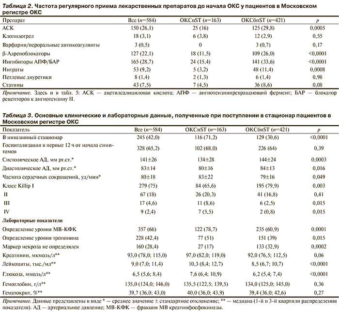 ОКСпST был у 163 (27,9%) пациентов, а ОКСбпST — у 421 (72,1%).