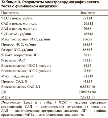 Всем пациентам, включенным в исследование, выполнен электрокардиографический тест с физической нагрузкой. Результаты обследования представлены в табл. 3.
