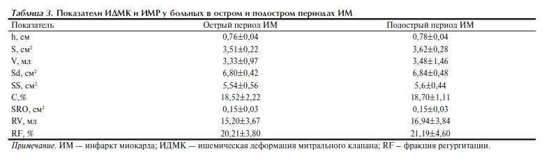 Таким образом, у больных трансмуральным и крупноочаговым ОИМ в процессе ремоделирования ЛЖ и МК происходят деформация структур клапана и развитие недостаточности МК различной степени тяжести.