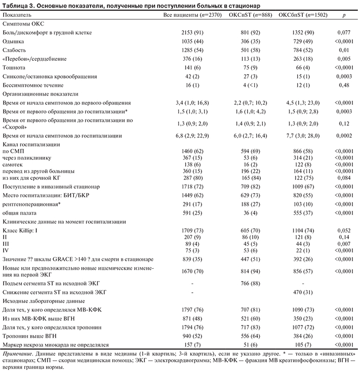 Данные пациентов с ОКСпST, полученные на момент госпитализации, представлены в табл. 3.